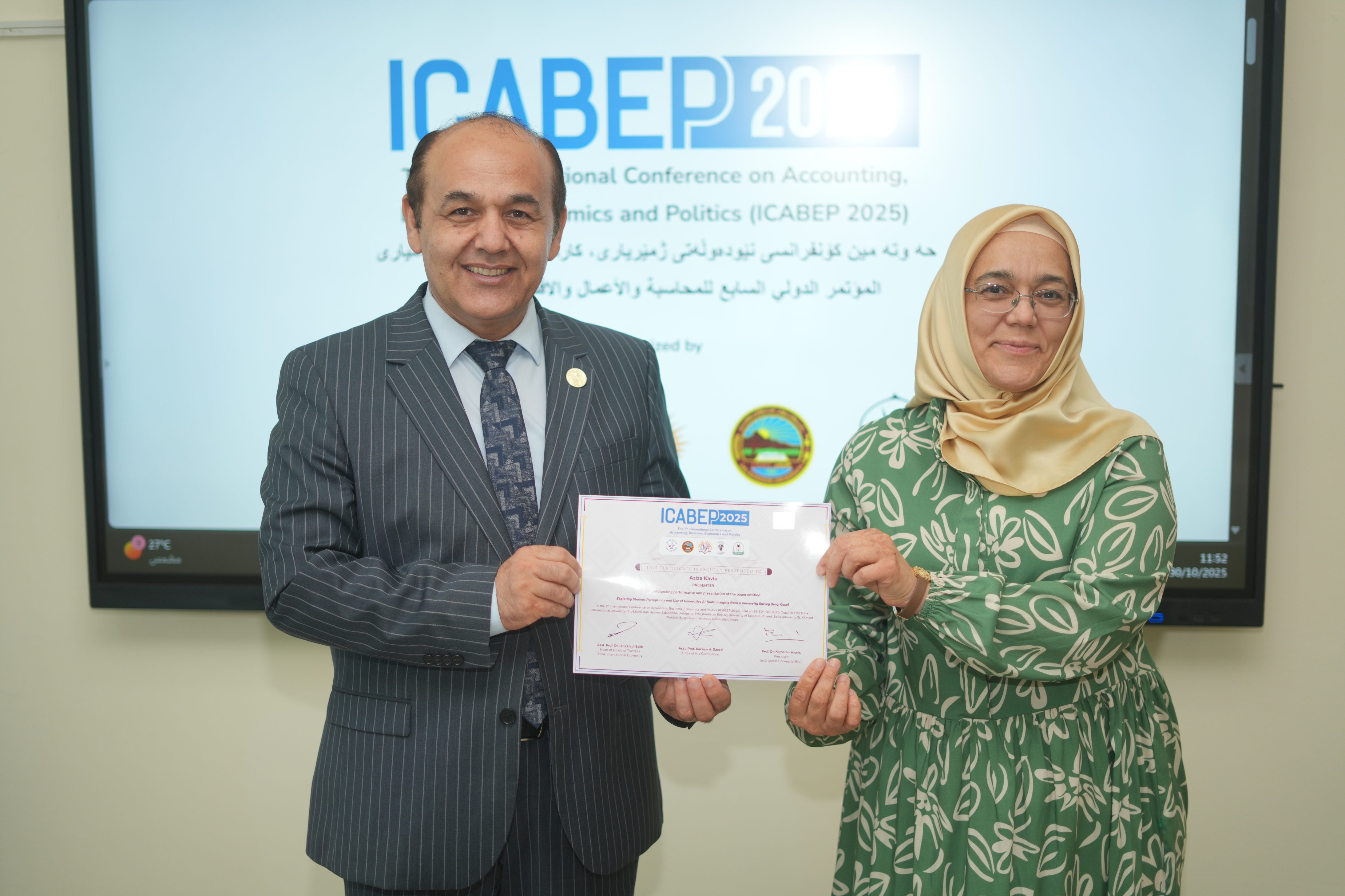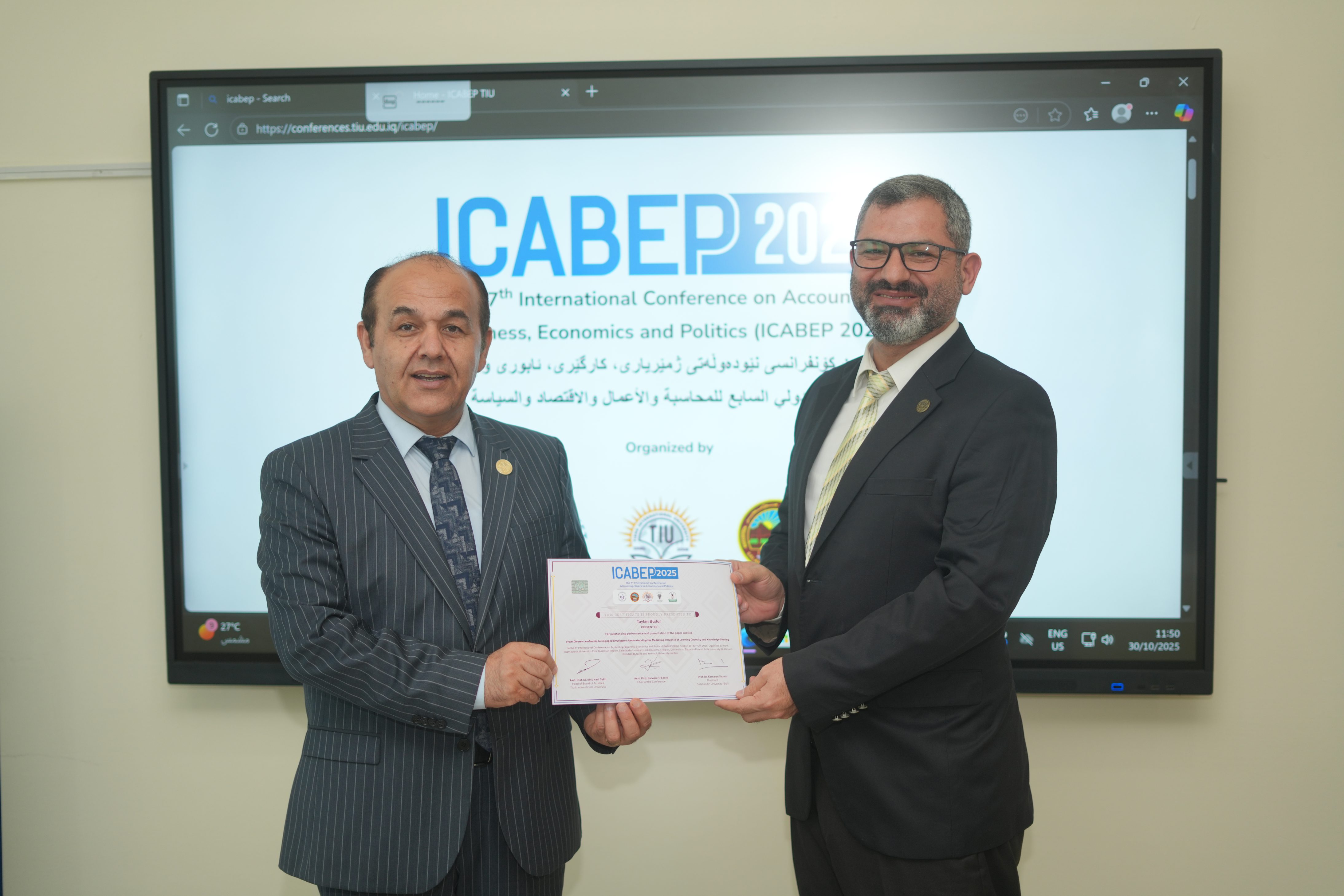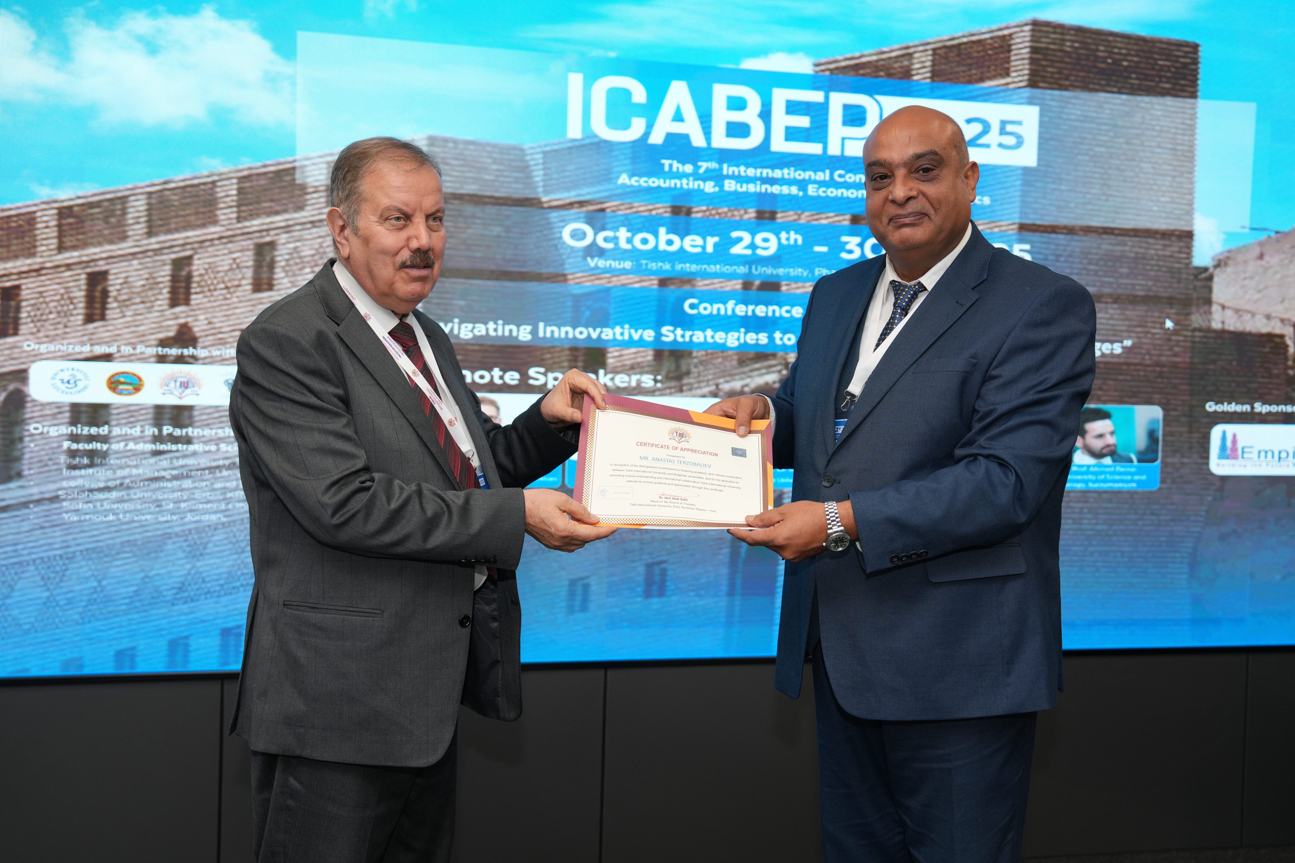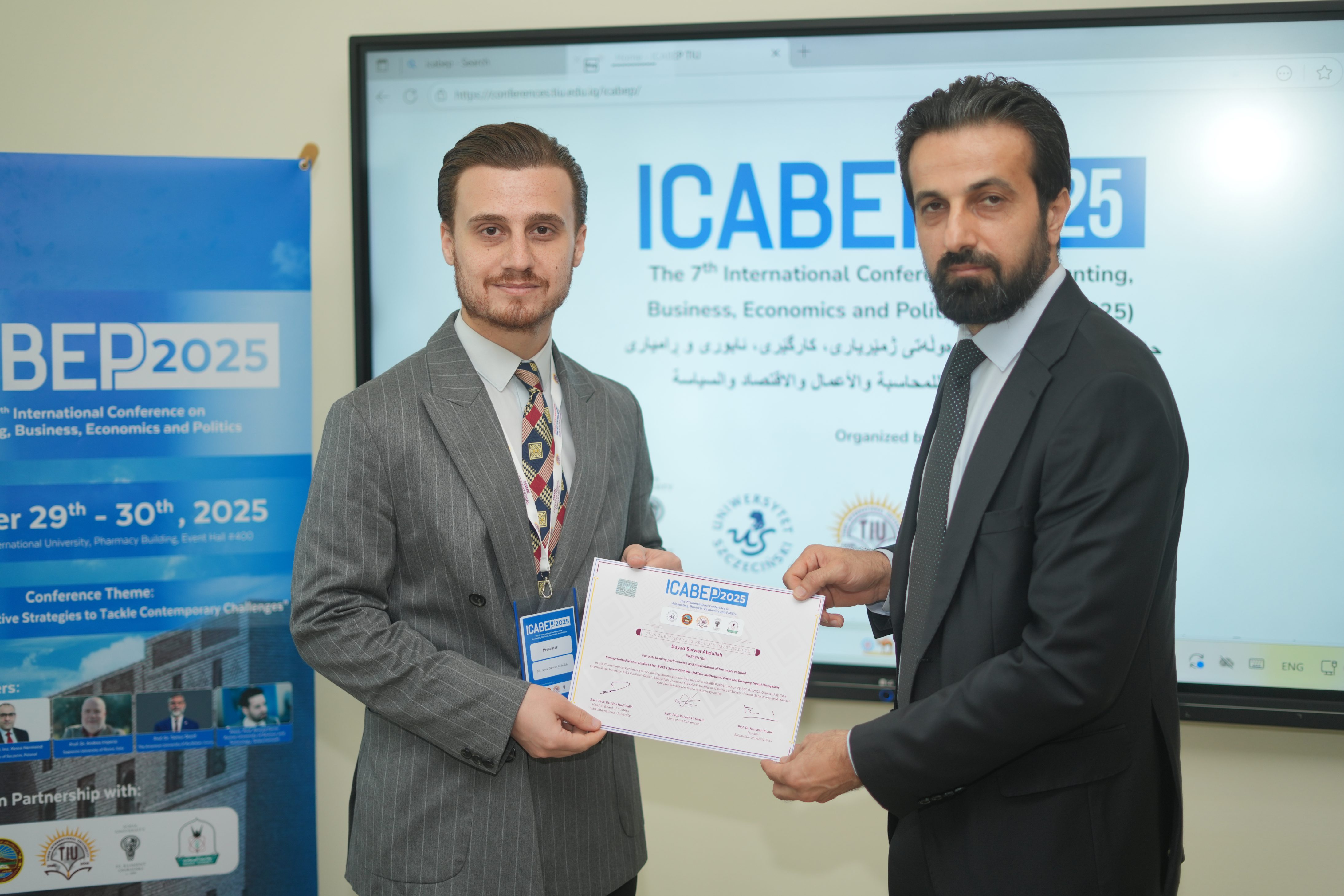 The Faculty of Administrative Sciences and Economics of Tishk International University successfully hosted the 7th International Conference on Accounting, Business, Economics and Politics (ICABEP 2025) at the Pharmacy Building, Hall 400, bringing together a distinguished group of scholars, researchers, and professionals to discuss emerging trends and challenges across the fields of accounting, business, economics, and politics.