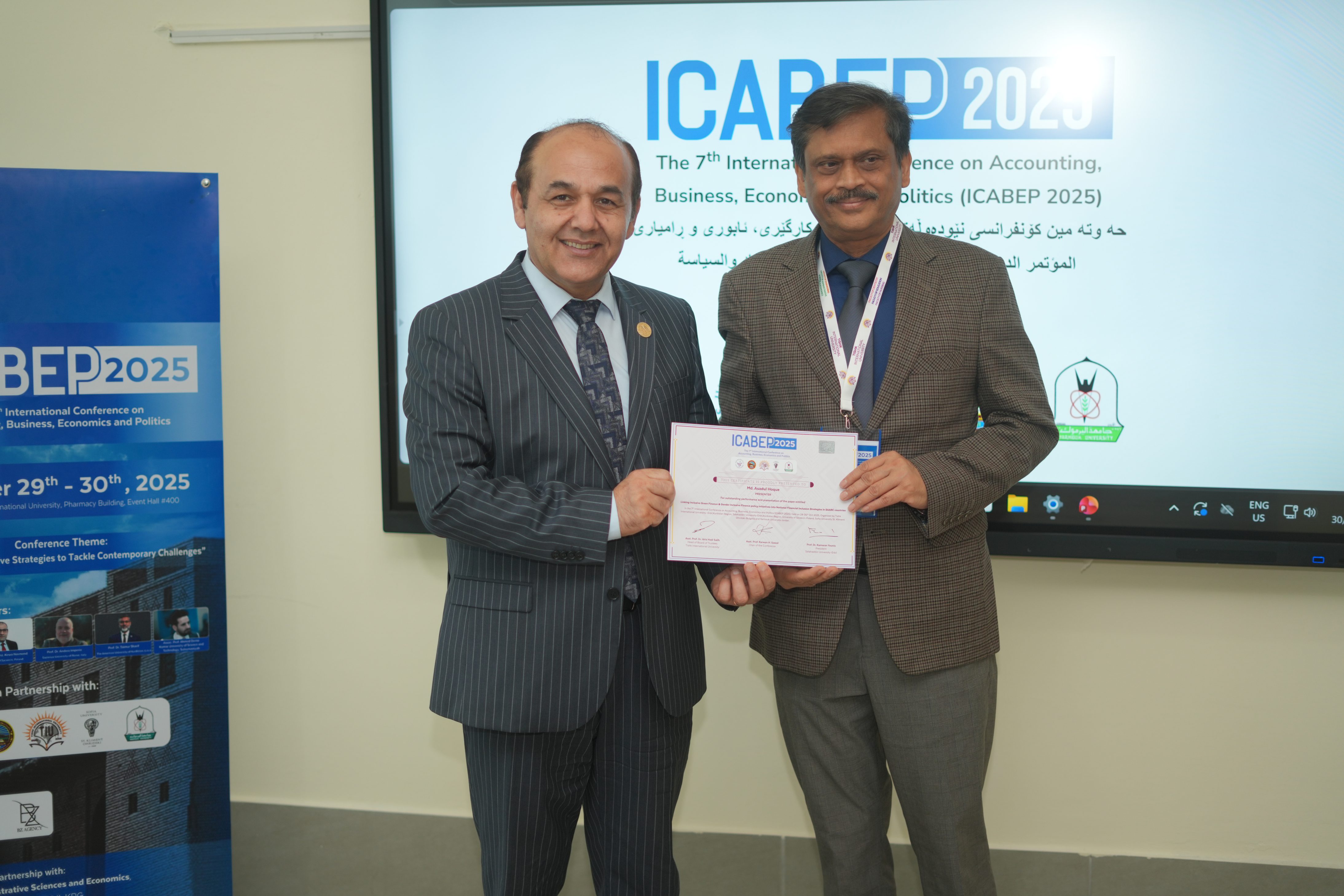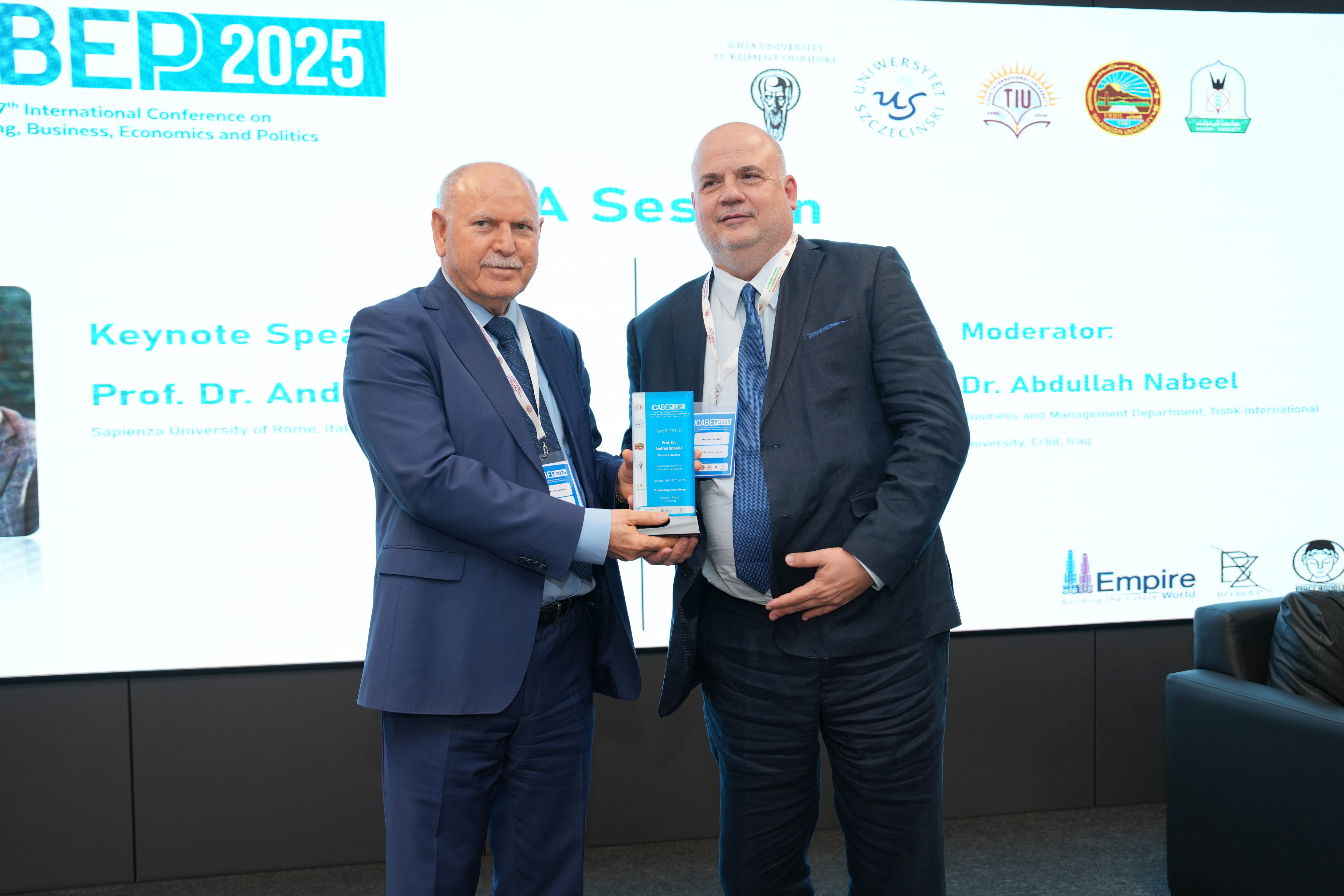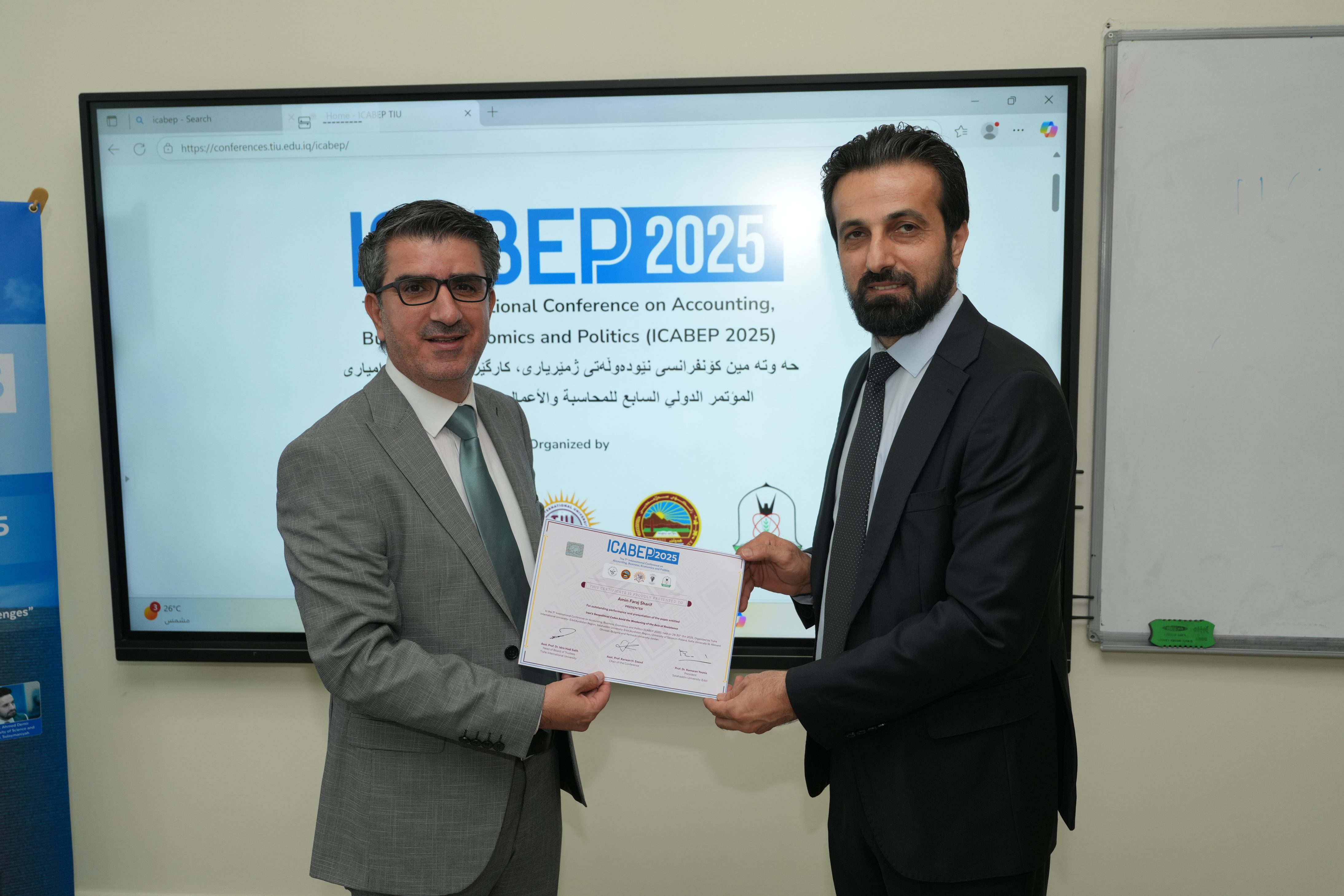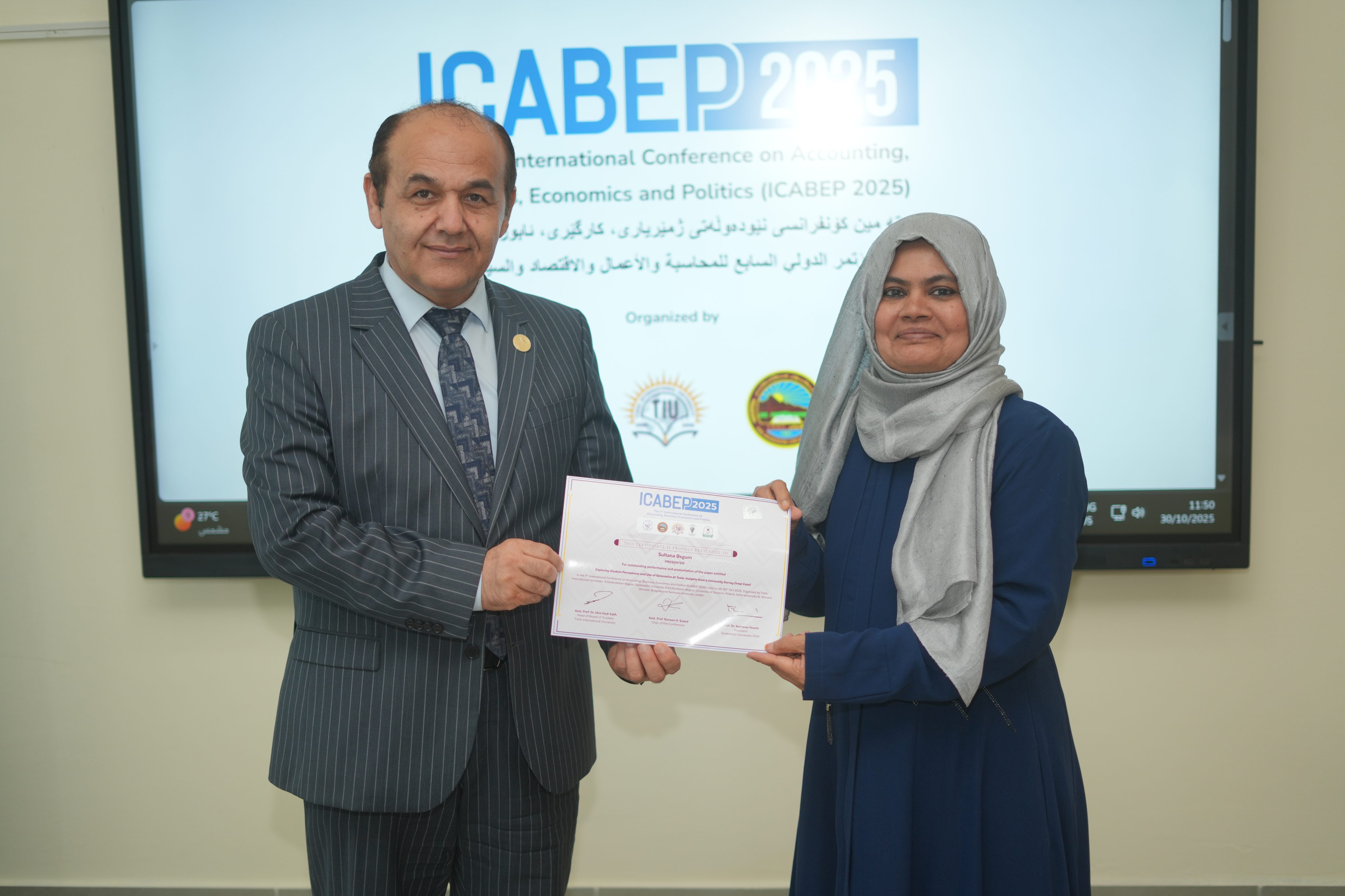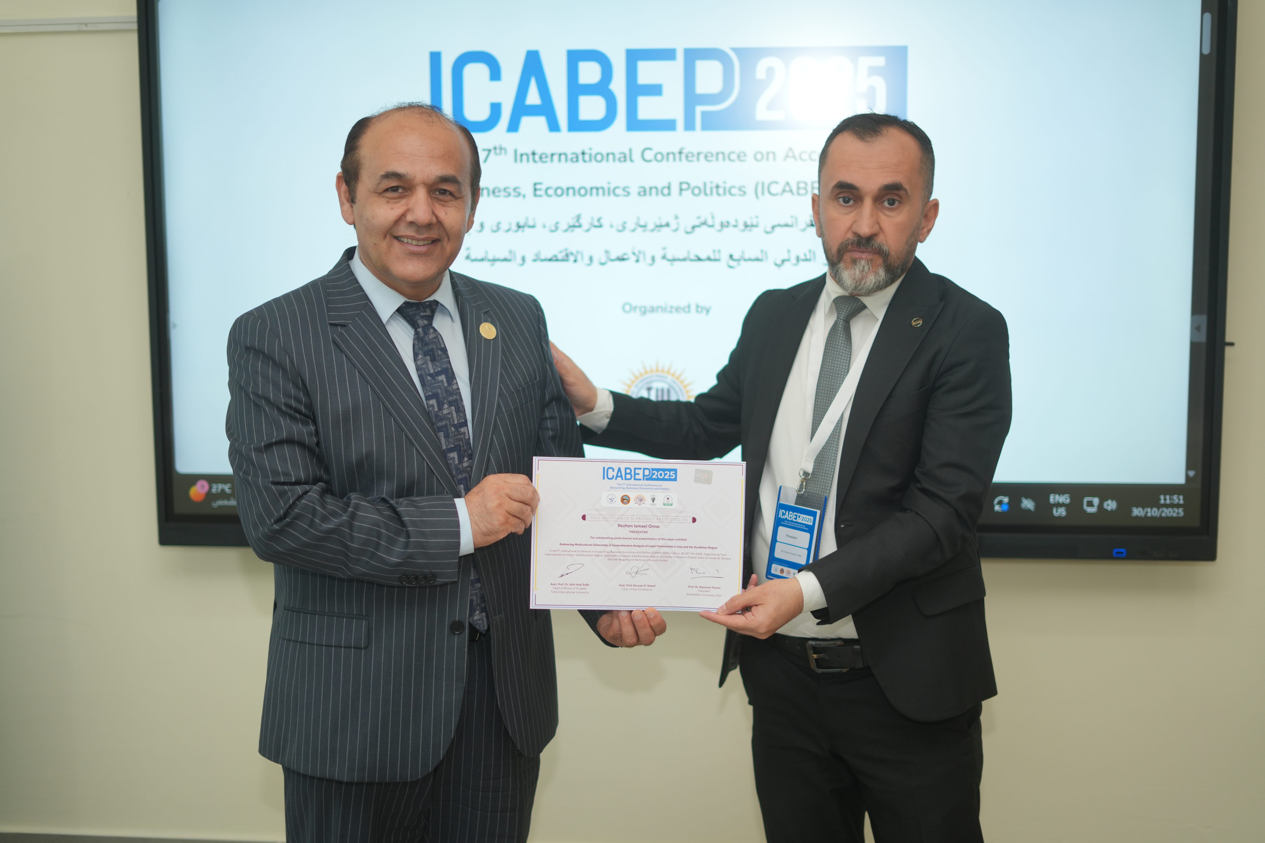 The Faculty of Administrative Sciences and Economics of Tishk International University successfully hosted the 7th International Conference on Accounting, Business, Economics and Politics (ICABEP 2025) at the Pharmacy Building, Hall 400, bringing together a distinguished group of scholars, researchers, and professionals to discuss emerging trends and challenges across the fields of accounting, business, economics, and politics.