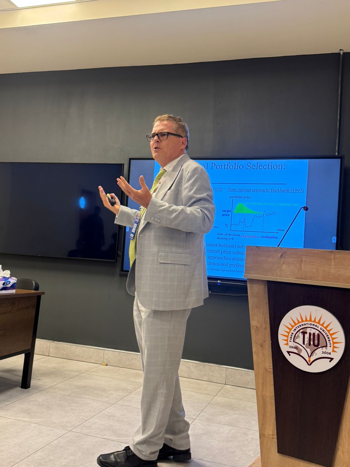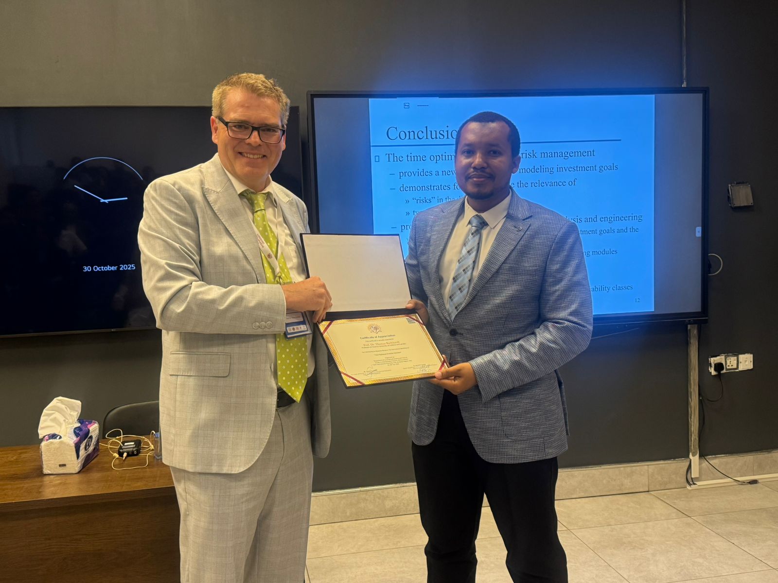 Following the coffee break, an engaging discussion session was held that fostered meaningful academic dialogue. Staff members from both departments actively engaged with Professor Burkardt, raising thought-provoking questions about the practical implementation of time-optimal strategies, their applicability to emerging markets. The interactive nature of the session enriched the learning experience and demonstrated the strong academic culture within both departments.