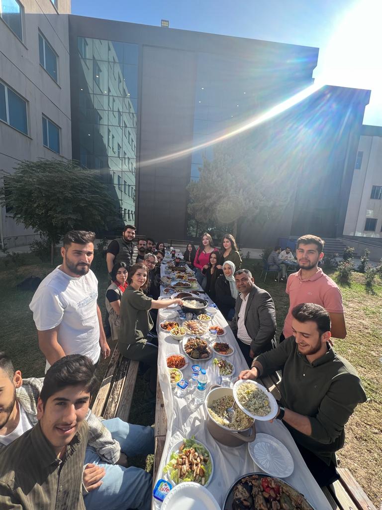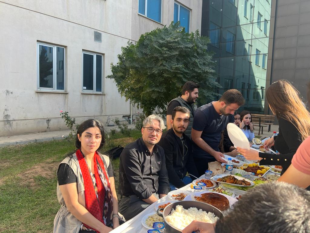 Students brought delicious homemade food such as biryani and dolma and shared it with everyone at the gathering. The lunch took place during break time between 12:50 PM and 1:30 PM. This lunch aimed to create a stronger bond between the students themselves and between the students and lecturers. In the end, everyone thanked the students who contributed to the gathering with homemade food and desserts, and all students participated in cleaning the area before returning to their classes.