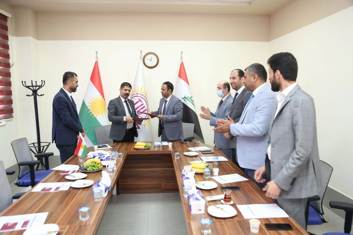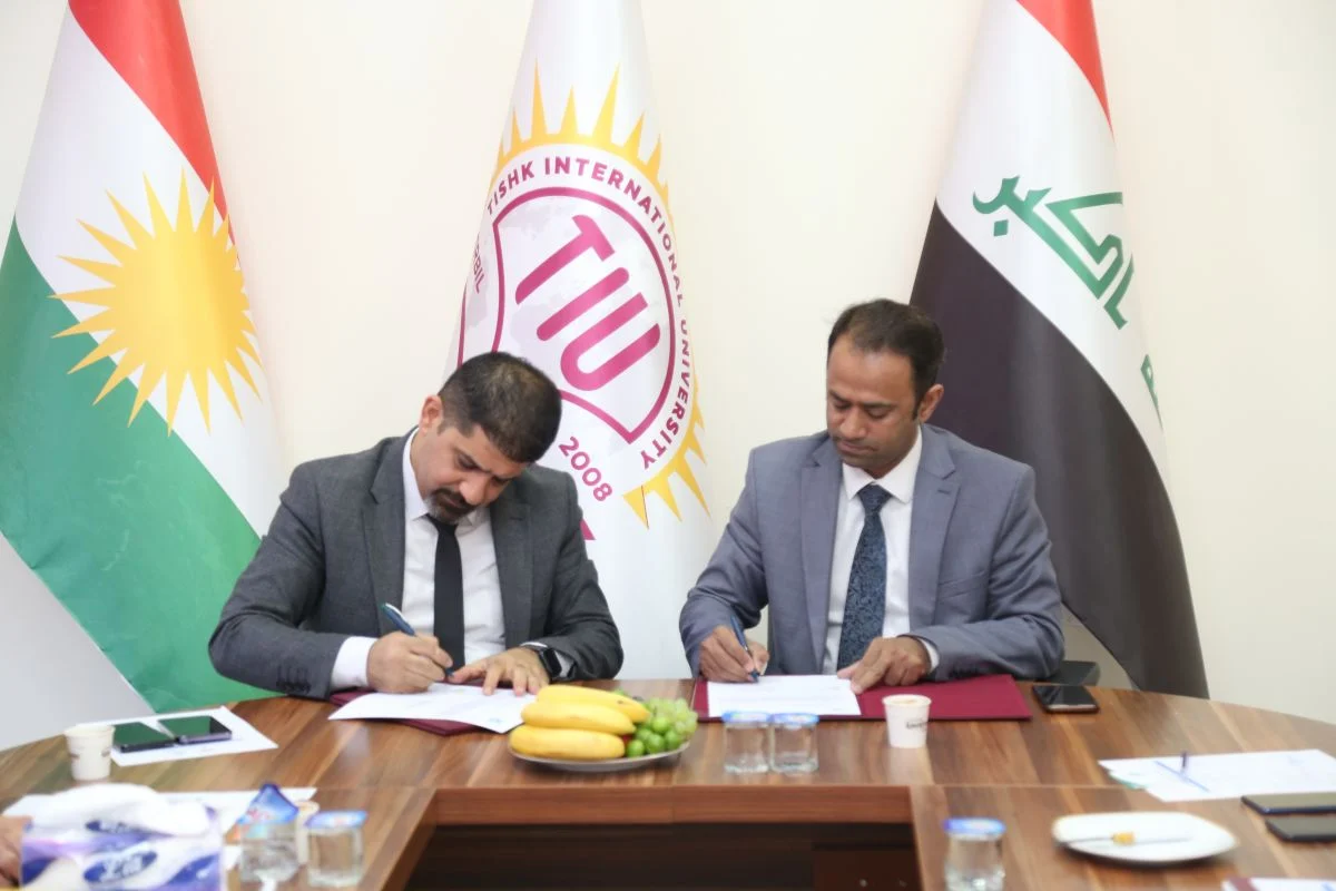 Tishk International University’s Faculty of Administrative Sciences and Economics has signed a Memorandum of Understanding (MOU) with First Iraqi Bank, one of the leading banks in digital banking in Iraq and the Kurdistan Region, established in 2020. The MOU signing ceremony was held at the university campus. The MOU aims to establish a collaboration between Tishk International University and First Iraqi Bank in areas of mutual interest, such as education, student and staff training, internship, and career development.