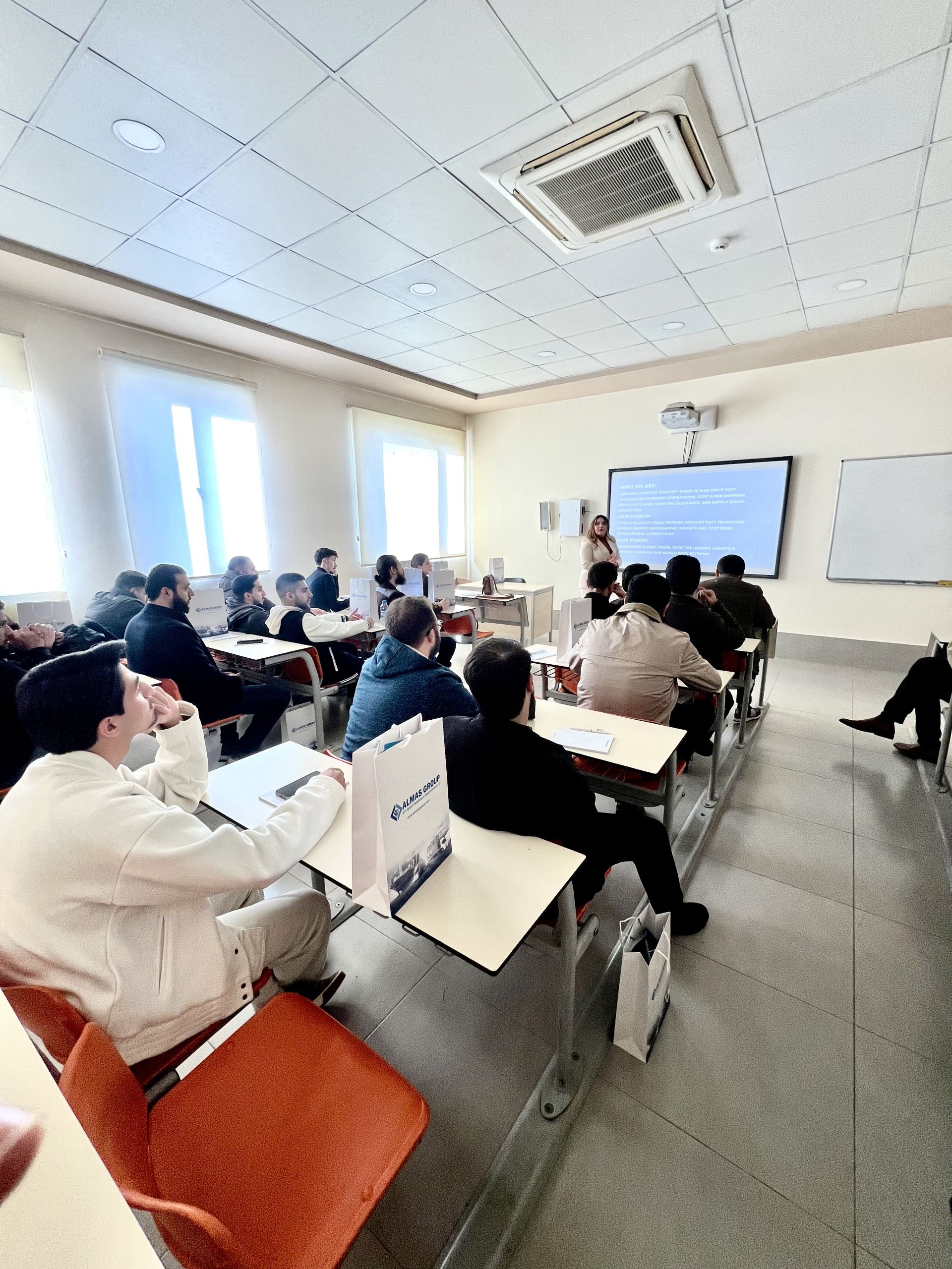 On Sunday, December 15, 2024, the Business and Management Department at Tishk International University (TIU) hosted representatives from Almas Group Logistics for an insightful session with third-year students. The visit aimed to connect classroom learning with real-world applications in logistics and supply chain management, a key subject in the curriculum.