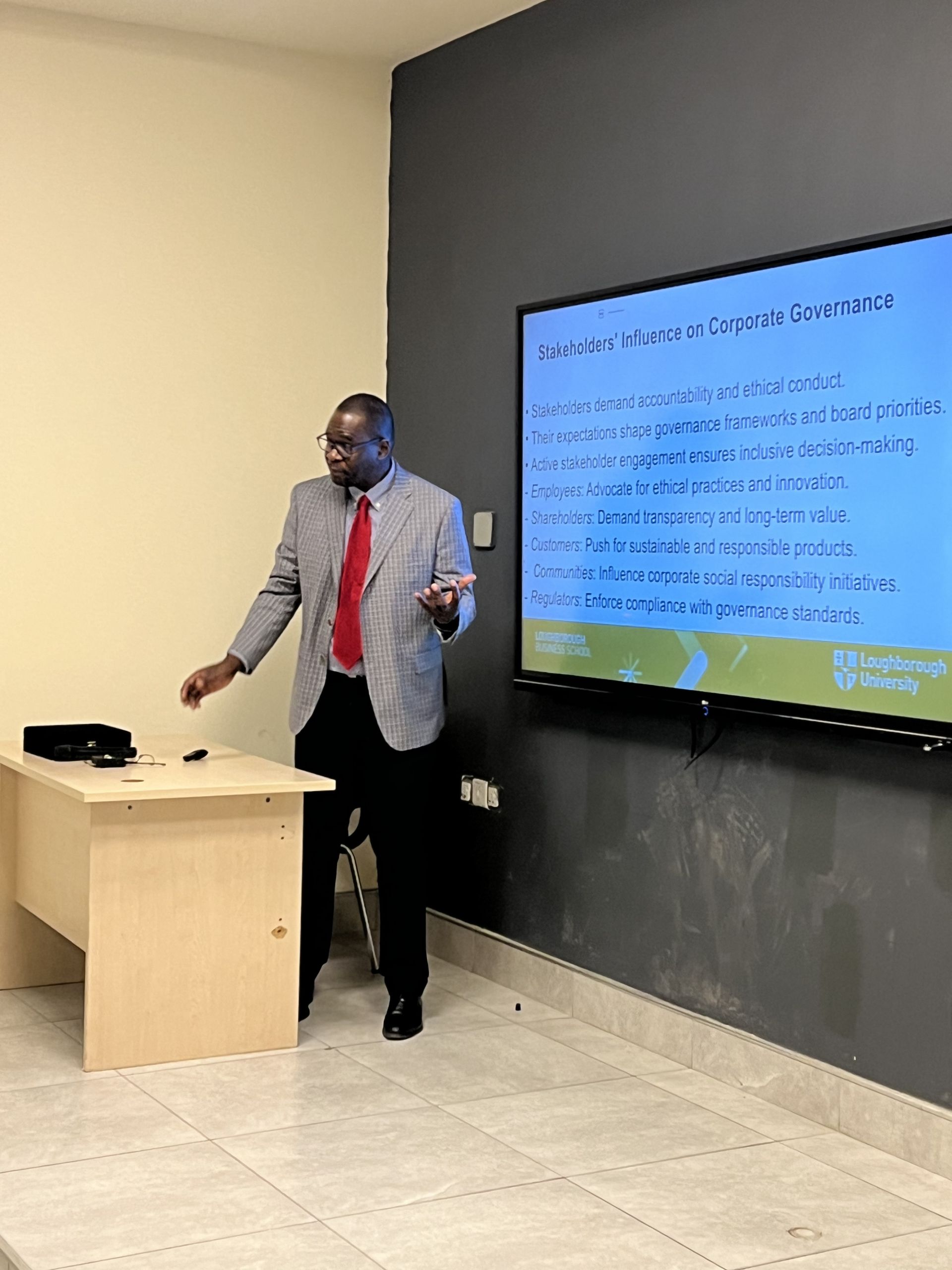 The highlight of the event was a compelling presentation by Professor Amon Chizema, a renowned expert from Loughborough University, England. Professor Chizema underscored the pivotal role of stakeholders—including employees, customers, and regulators—in holding corporations accountable and driving them toward ethical and sustainable practices. He emphasized that today’s businesses are increasingly expected to align their strategies with the United Nations’ Sustainable Development Goals (SDGs), particularly SDG 8: Decent Work and Economic Growth.