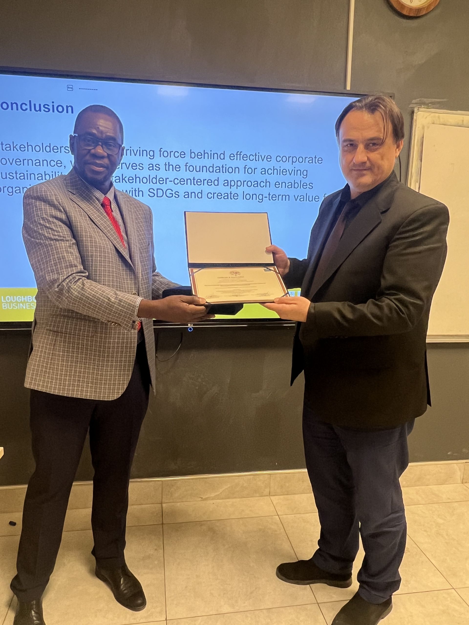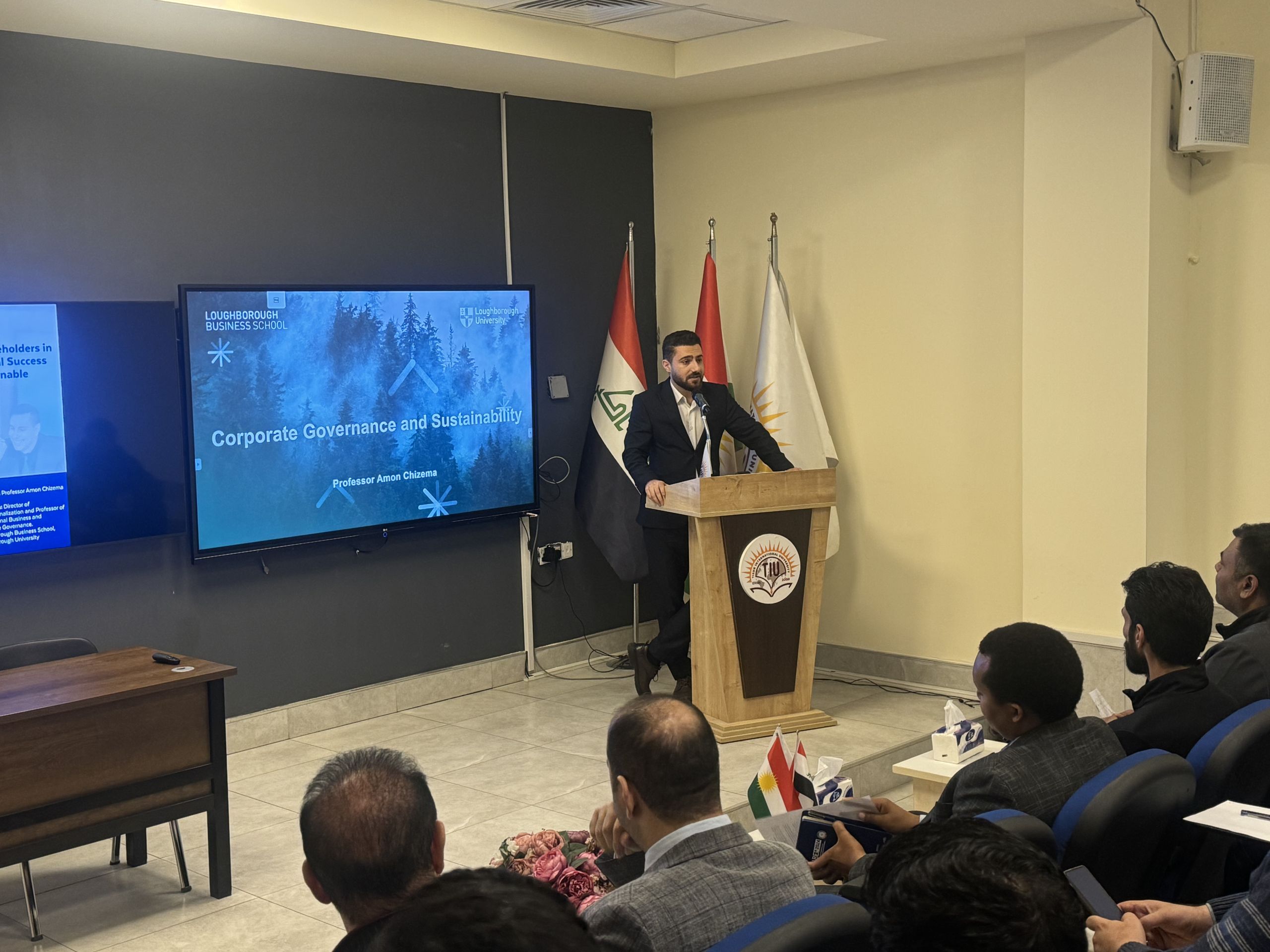 Keywords: Corporate Governance, Sustainability, Sustainable Development Goals (SDGs), Stakeholders, Tishk International University (TIU), FASE, Workshop, Business, Accounting, Banking, Finance, Loughborough University, Professor Amon Chizema, SDG 8