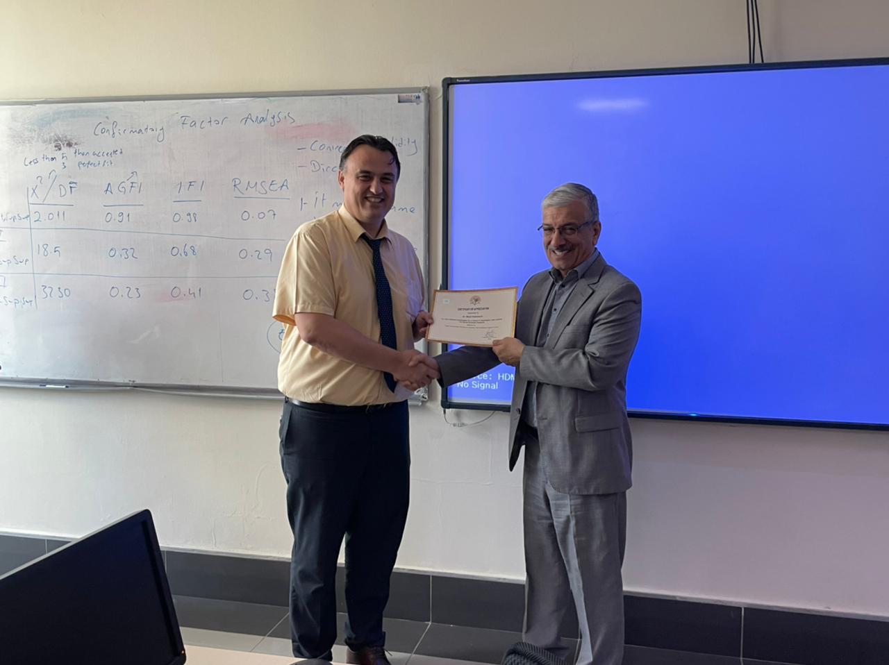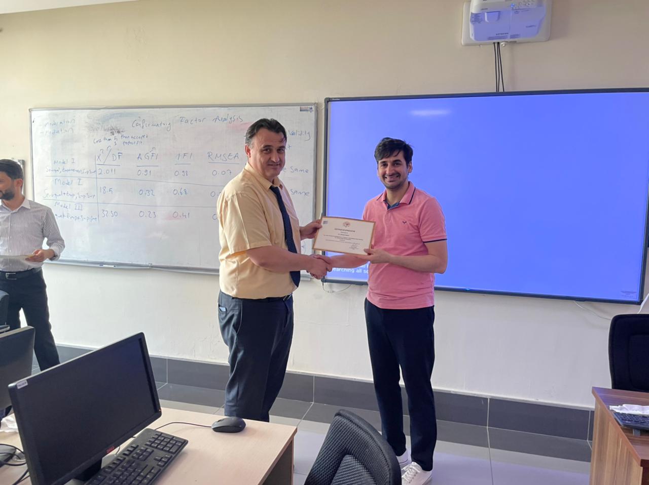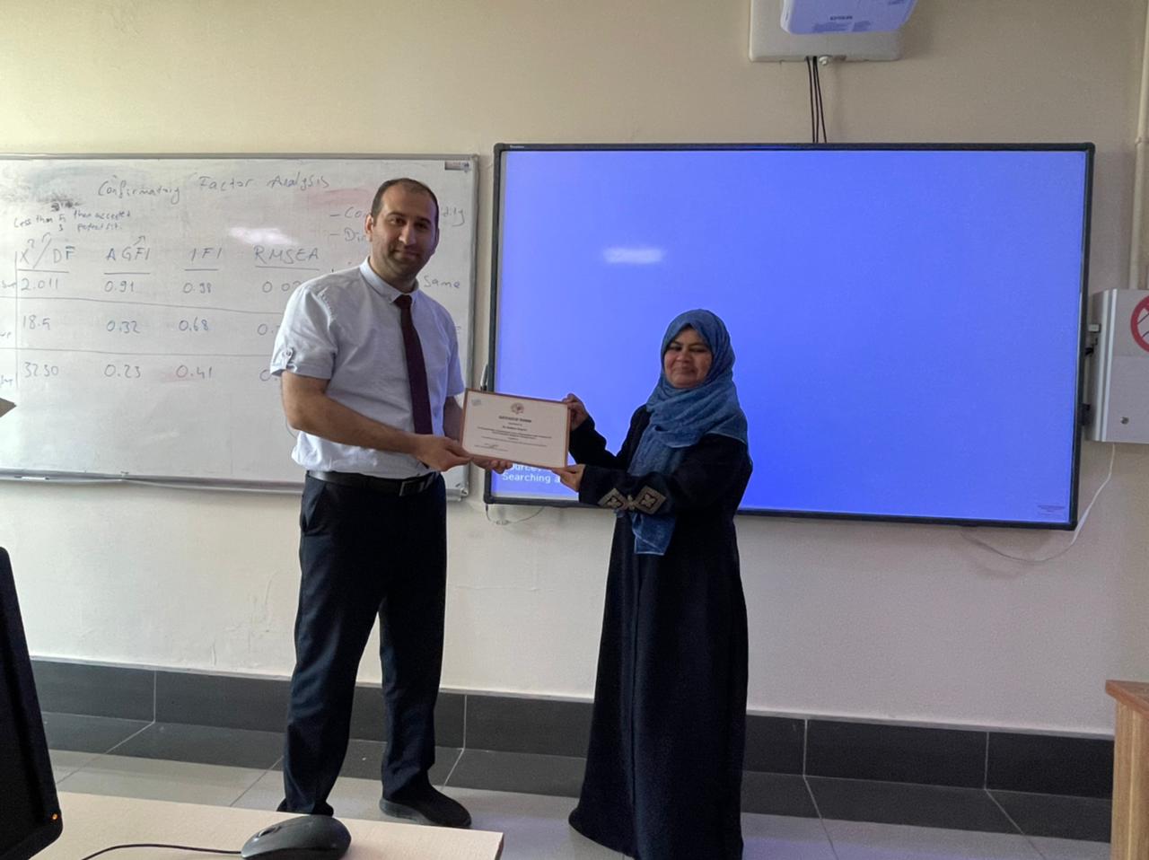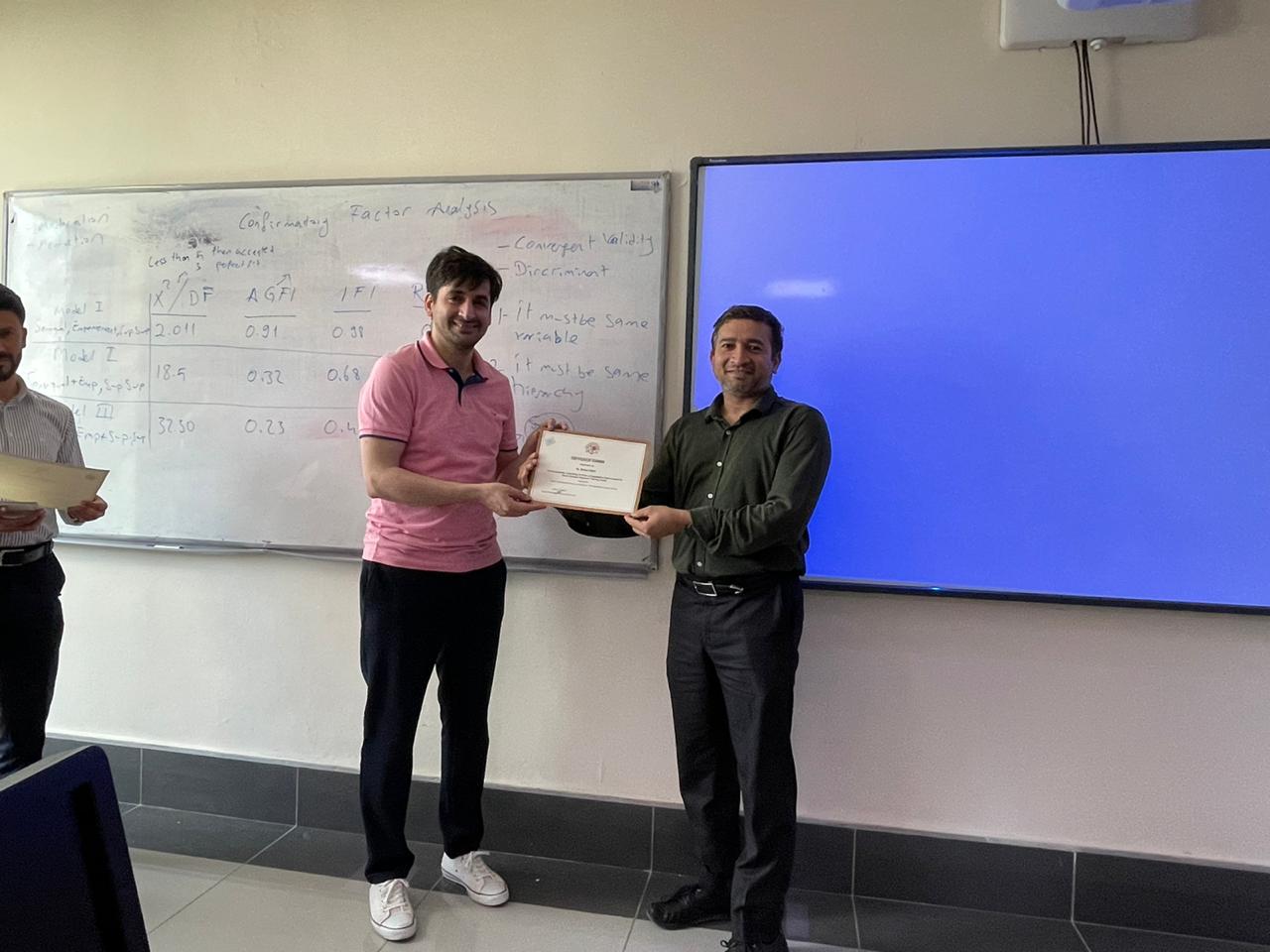 Purpose: This training program aimed to help academicians and researchers learn the basics and advanced statistical data analysis techniques. The training’s first part (A) covered the basics of quantitative data analysis using SPSS (Statistical Package of the Social Science). The second part (B) covered the advanced techniques for multivariate data analysis and sophisticated models for decision-making and forecasting using AMOS.