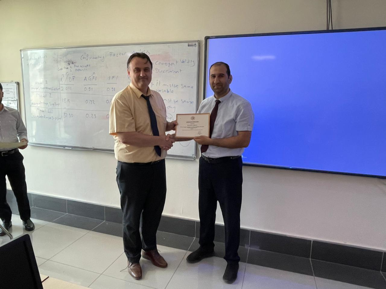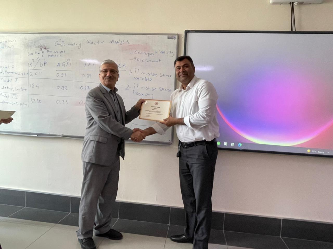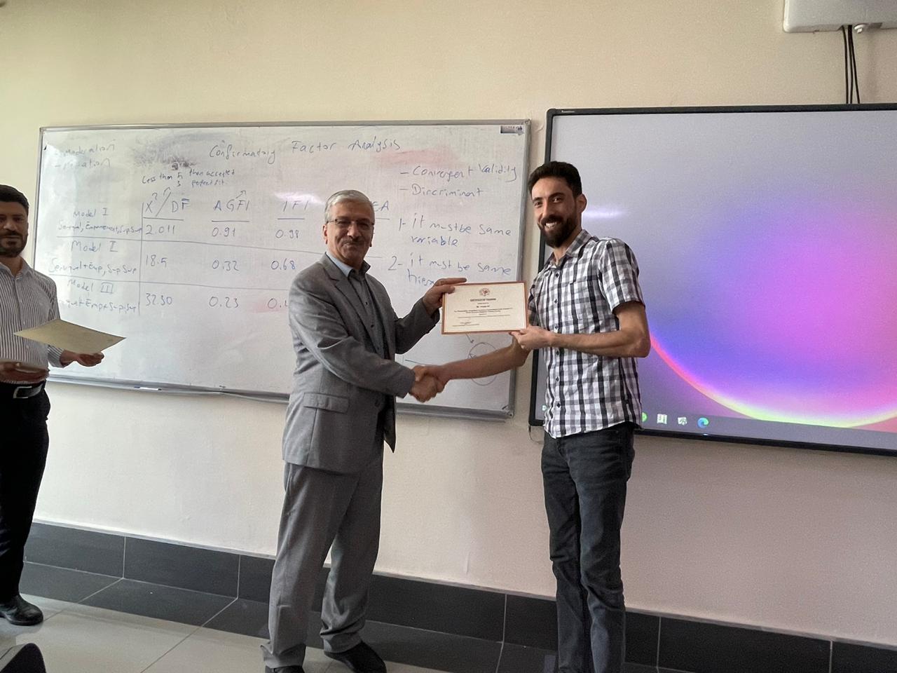 The academic staff of the Faculty of Administrative Sciences and Economics at Tishk International University completed 25 training hours on Quantitative Data Analysis for Social Sciences Research on 12th June 2022, organized by the Faculty of Administrative Sciences and Economics. The training further equipped staff with the latest research ideas and tools, which are crucial to teaching and learning and would be of educational benefit.