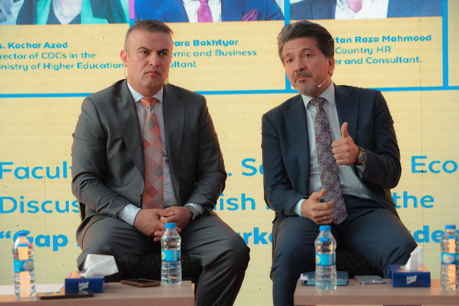 The panelists discussed challenges and solutions in aligning academic curricula with the needs of the market in Kurdistan. They emphasized the critical role of career guidance services, practical skill-building, and stronger partnerships between universities, government bodies, and industry stakeholders.