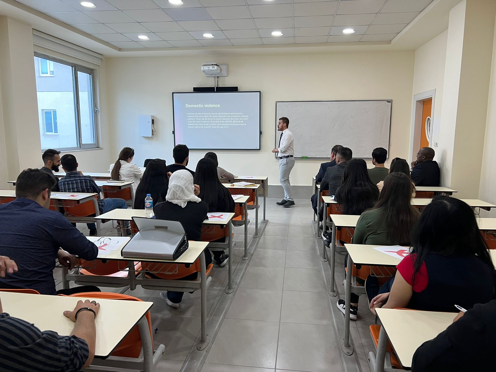 The first seminar was about gender-based violence also known as GBV, the speaker of this seminar was Mr. Bayad Sarwar, who is also a research assistant for the International Relations and Diplomacy Department. Mr. Bayad Sarwar talked about GBV, which is the act of violence being directed at another person because of their gender. The types of GBV include physical harm, sexual harm, psychological harm, or economic harm. Mr. Bayad also mentioned some statistics, for example how 22% of all women who have had a partner have experienced domestic violence, and 45% – 55% of all women in the EU have experienced sexual harassment, which are all parts of GBV. Forced Marriage is also another form of gender-based violence which is when a marriage is concluded by force or done before reaching the minimum age for marriage.