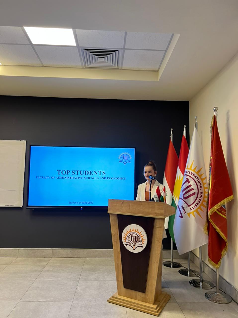 The Student Representatives at the Faculty of Administrative Sciences and Economics at Tishk International University organized a ceremony for academically distinguished students who obtained the highest GPA among their colleagues over all the departments and levels in the faculty. The faculty organizes this event annually to celebrate the achievements of hard-working students and encourage other students towards further success. In this celebration, 36 students were selected as the faculty’s top students based on the Grade Point Average (GPA) for the academic years, 2021-2022. The celebration was attended by staff members, students, and family members.