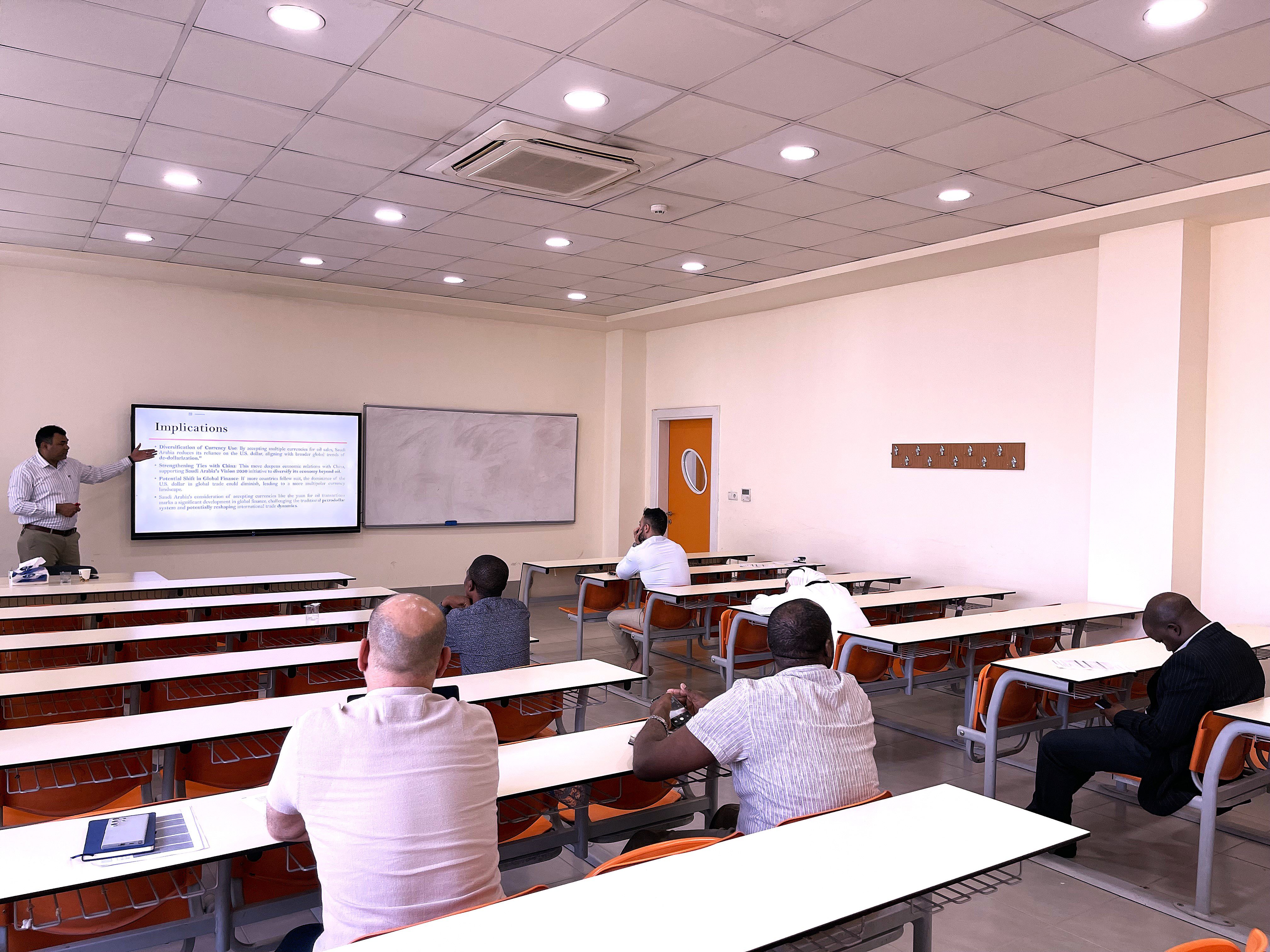 Dr. Waqar Ahmad provided a comprehensive understanding of the multifaceted drivers behind the de-dollarization trend. These include the use of the dollar as a tool for sanctions, which has prompted countries to seek alternatives; the rise of China’s economic power and its push for the internationalization of the Yuan; and advancements in digital currencies that could offer new avenues for cross-border transactions outside traditional dollar-denominated systems. The session examined how major economies and international blocs are increasingly engaging in bilateral trade using local currencies, and the implications of such actions for the dollar’s future role.