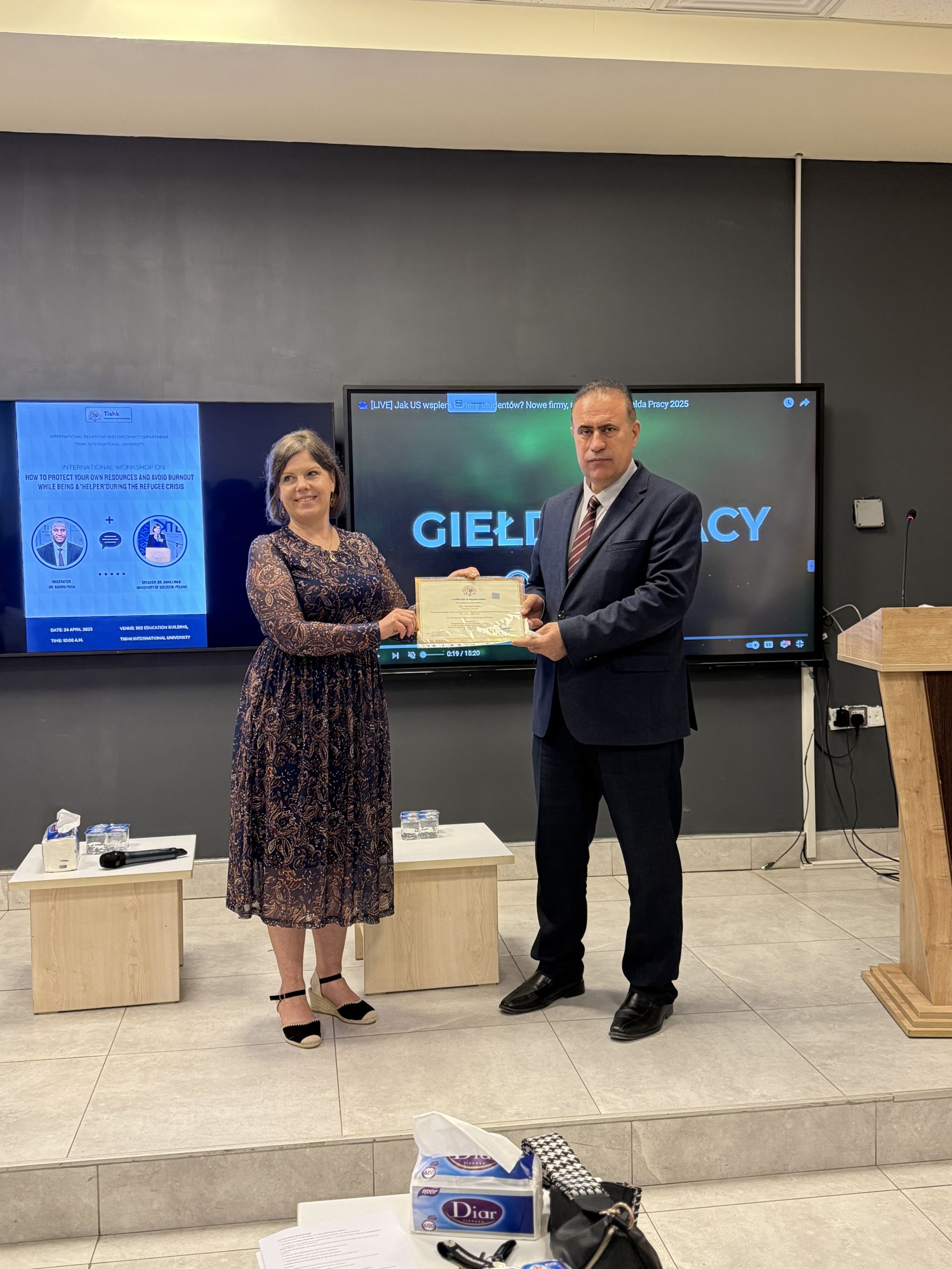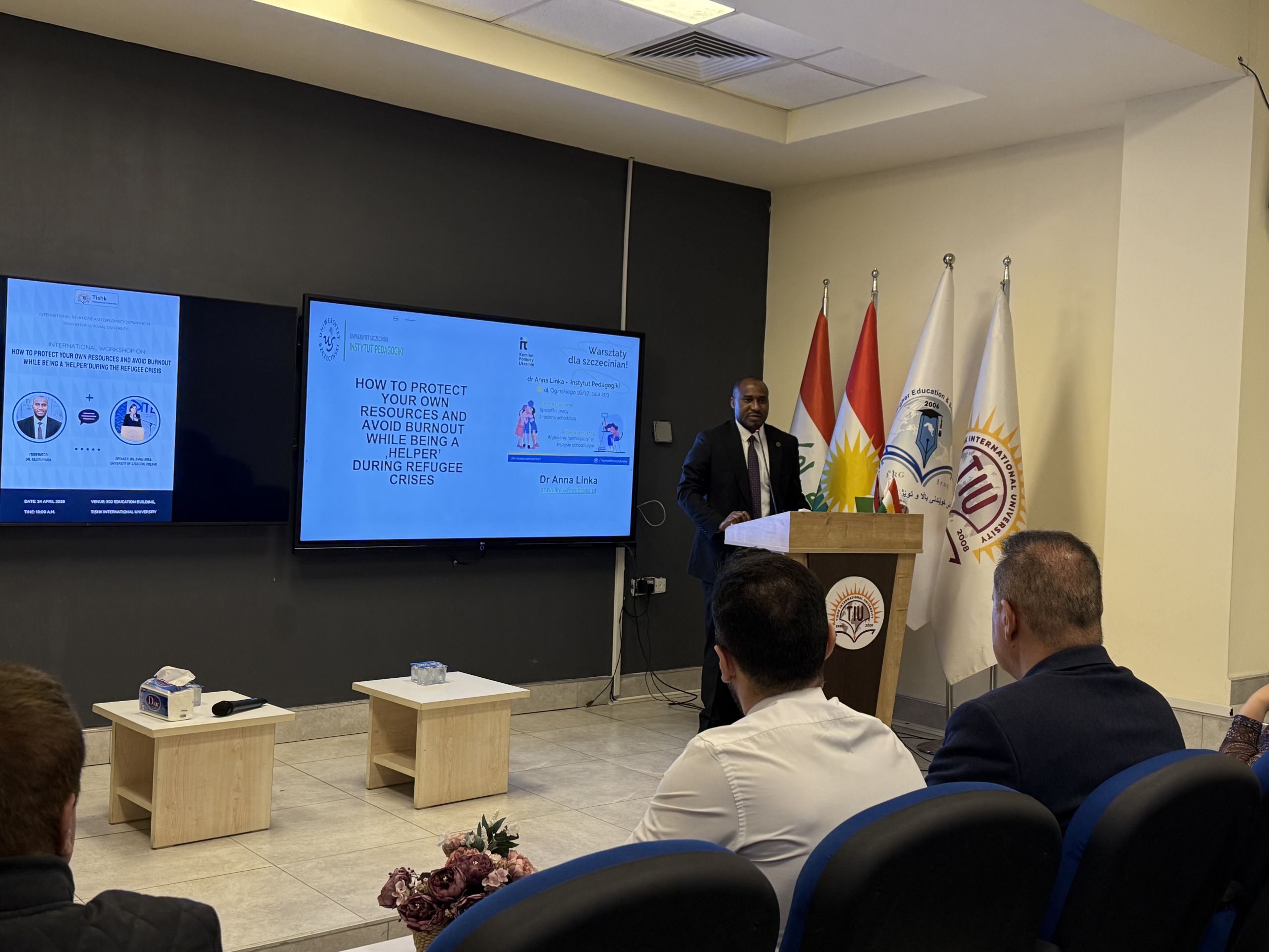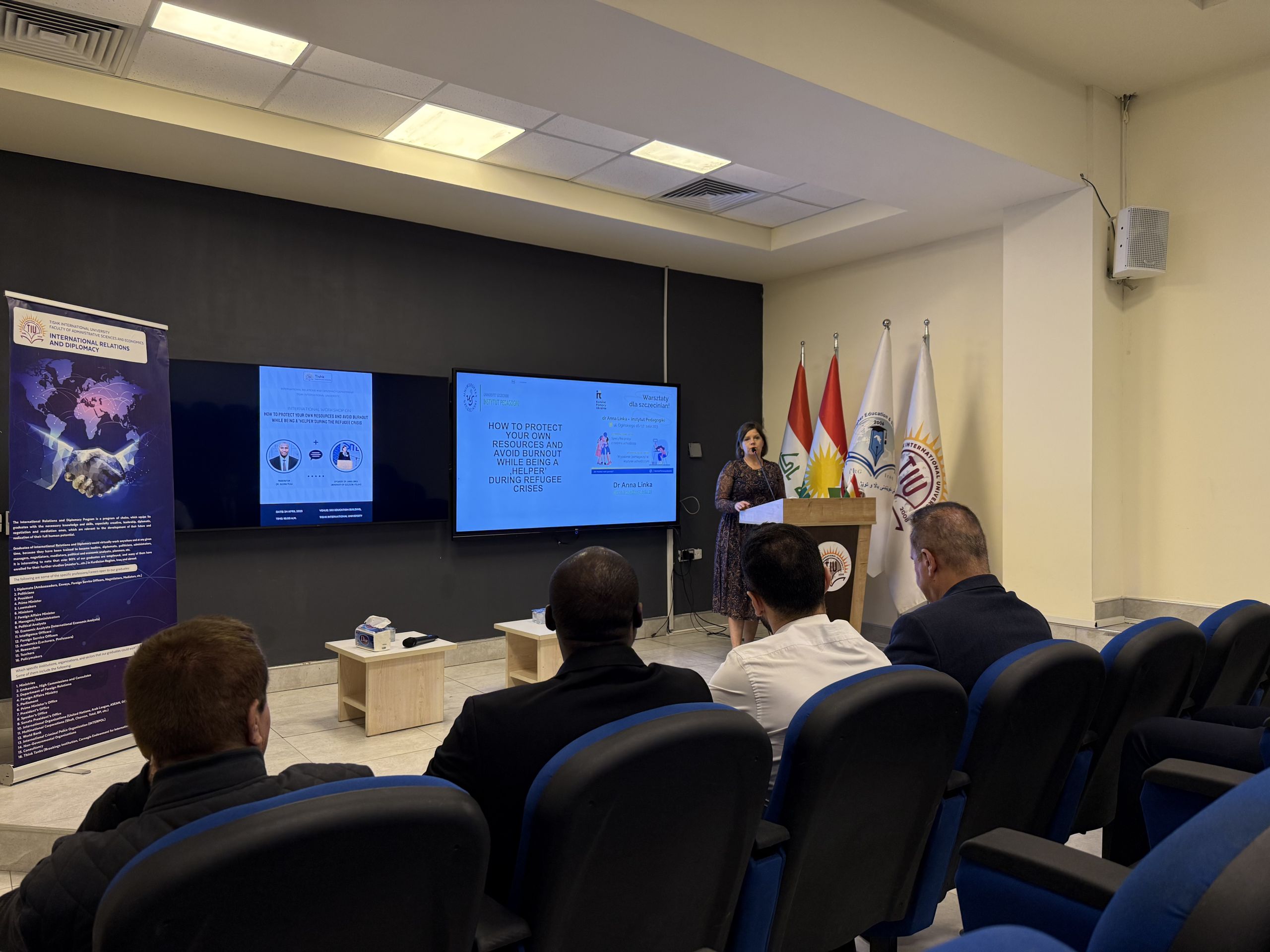 Keywords: Refugee Crisis, Burnout, Humanitarian Aid, International Workshop, Tishk International University, Dr. Anna Linka, University of Szczecin, SDG 16, International Relations, Stress Management, Global Cooperation, Academic Exchange