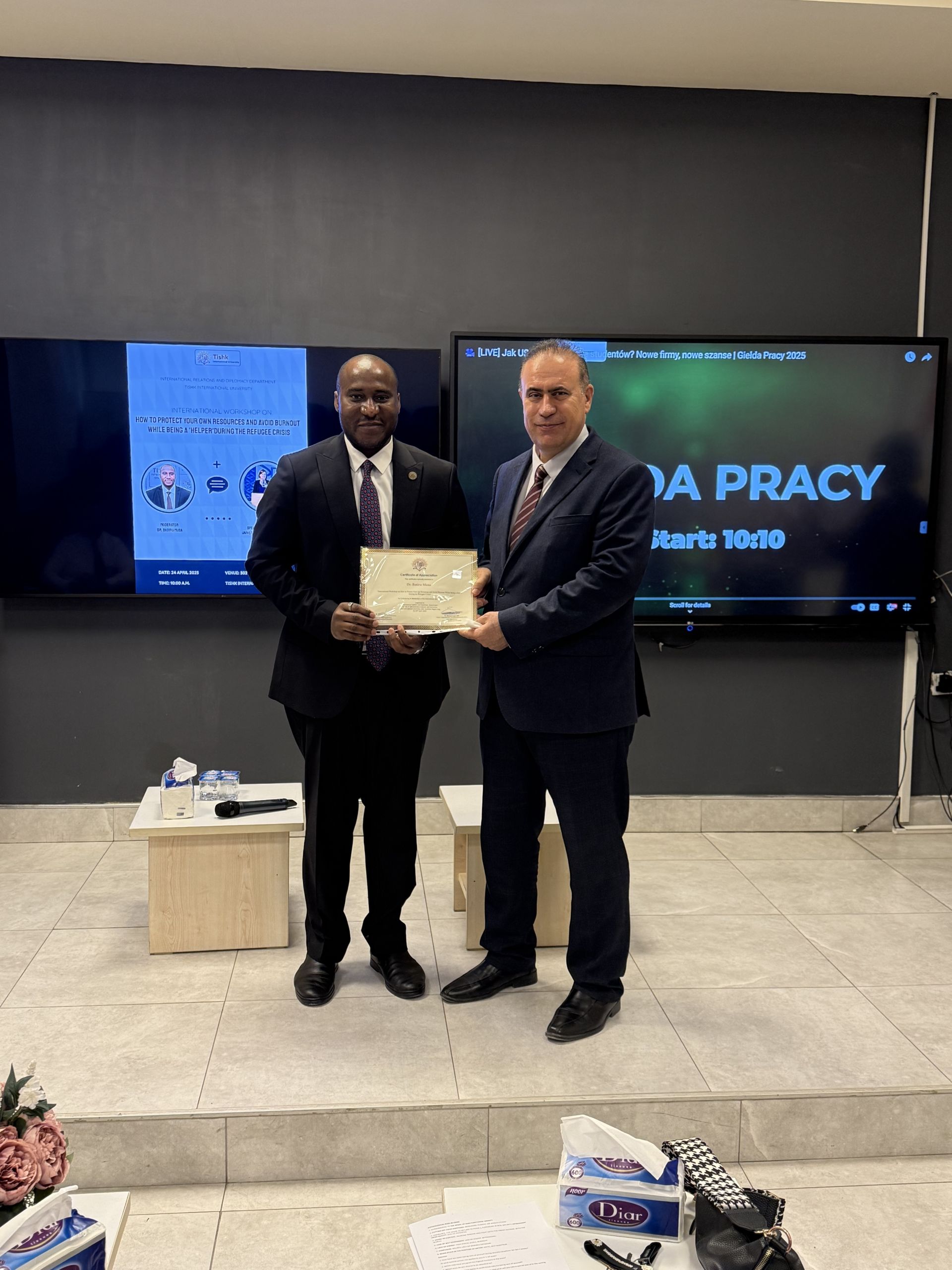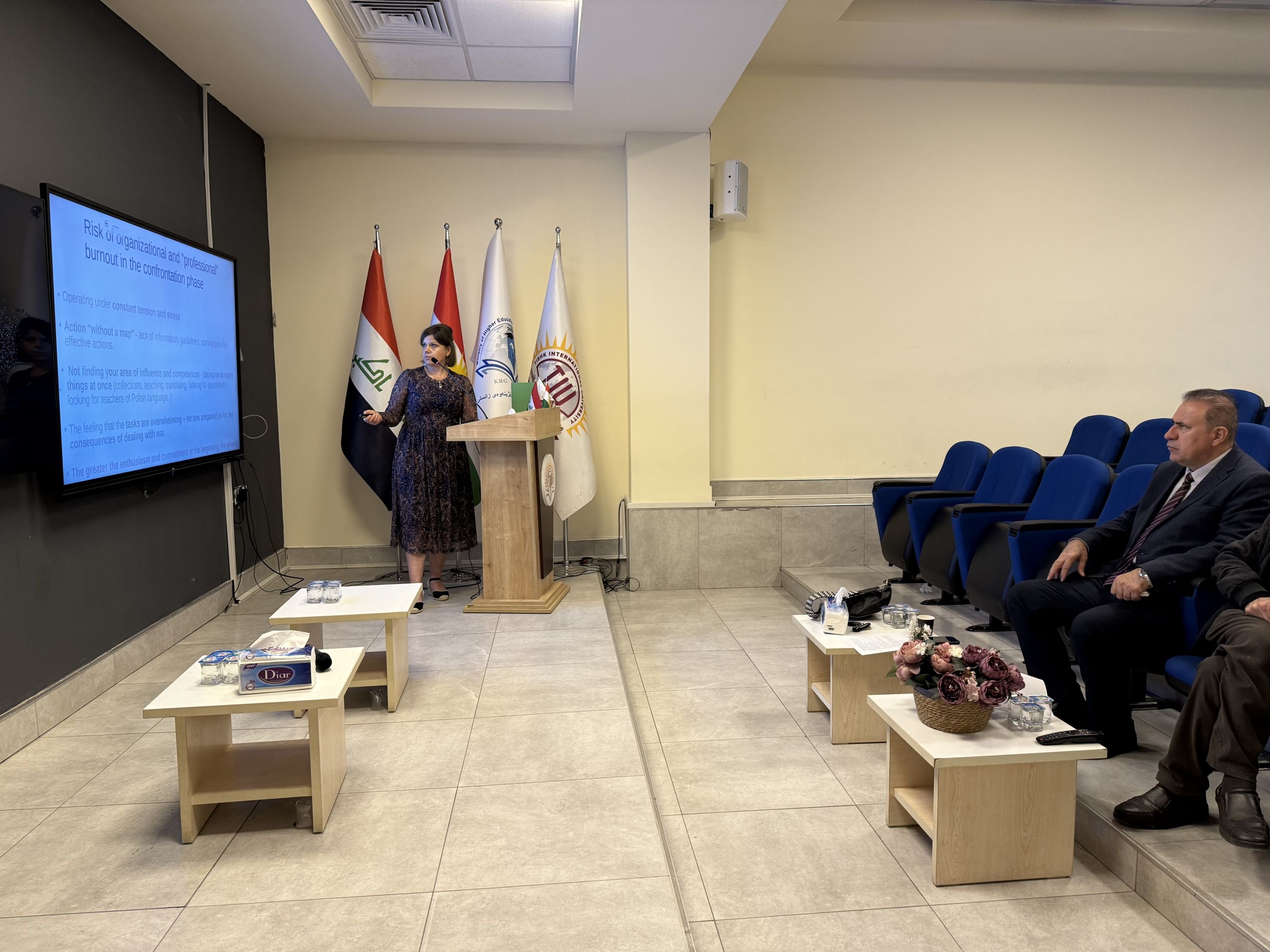 On April 24, 2025, the International Relations and Diplomacy Department at Tishk International University successfully organized an international workshop titled, ‘How to Protect Your Own Resources and Avoid Burnout While being a “Helper” During the Refugee Crisis.’ The workshop was designed to address the psychological and emotional toll experienced by humanitarian workers, volunteers, and professionals engaged in refugee crises.