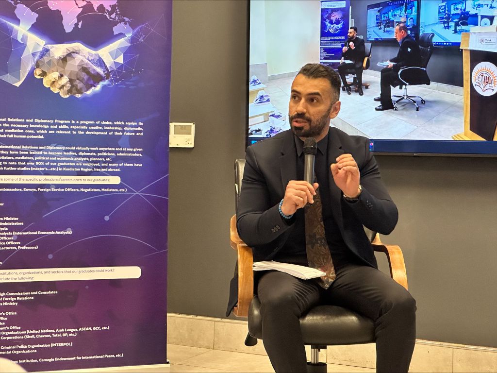 In collaboration with Durham University, UK, the International Relations and Diplomacy Department, Faculty of Administrative Sciences and Economics at Tishk International University organized a hybrid International Workshop on China and the Middle East, held on May 24th, 2023. The workshop began with an opening remark by the Head of IRD Department, Dr. Mohammad Salih Mustafa, who also served as the workshop moderator. He welcomed all attendees to the event, and introduced the five distinguished speakers.