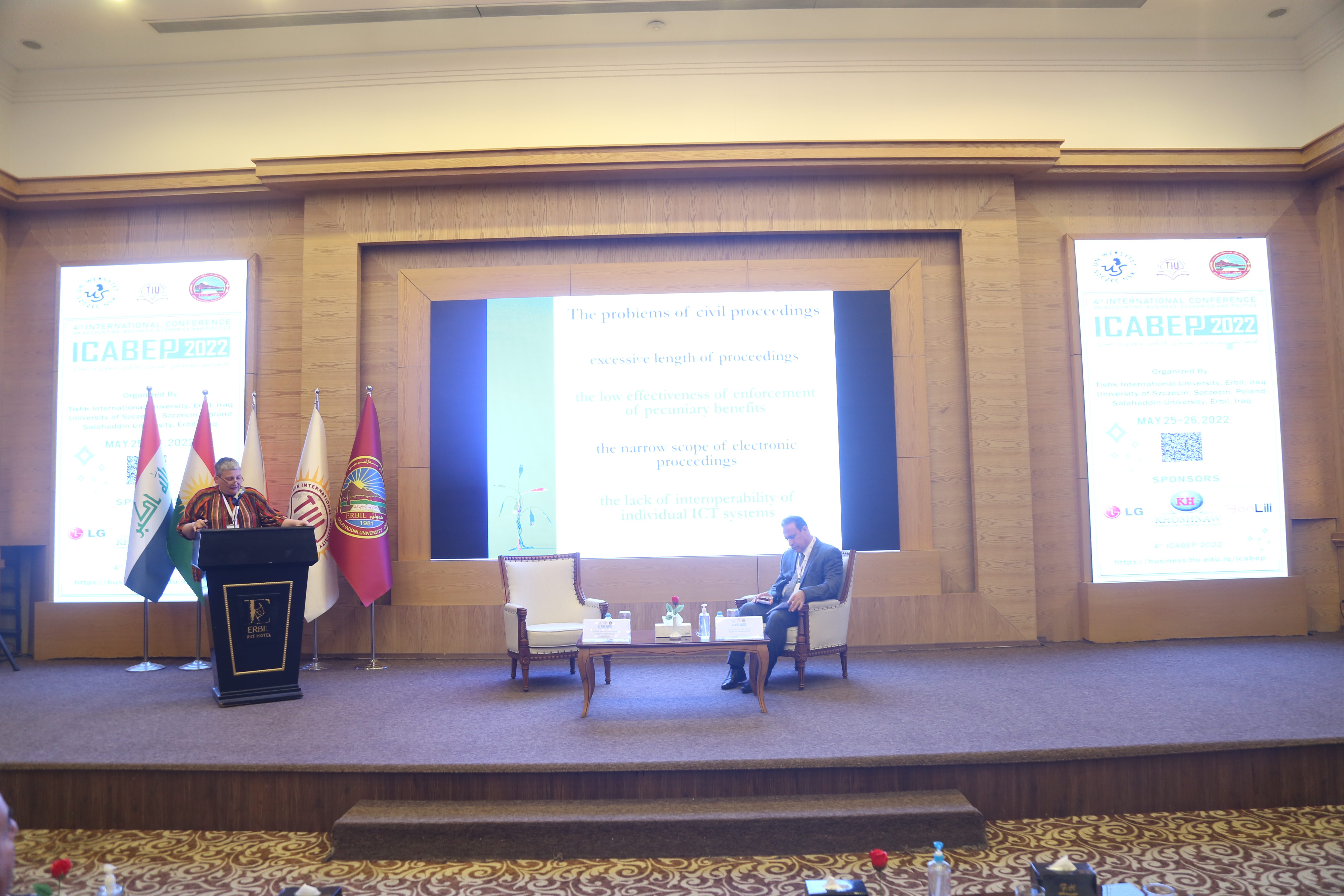 The conference was graced by the presence of respected dignitaries from Dear Mr Kamal Muslim Saeed, Minister of Trade and Industry from the Kurdistan Region of Iraq, Mr Dominik Musial, Consul, Head of Mission, from the Consular Agency of the Republic of Poland in Erbil, Dr Yassin Sabah Representative of the Ministry of Higher Education, Mr Shivan Abdulrahman, the General Secretary of KRG Chamber of Commerce and Industry, Honorable Chair Assist Prof. Dr Idris Hadi Head of Board of the Trustees, Honorable Co-Chair Assist Prof. Dr Abdul Samad Salahuddin President of Tishk International University, Honorable Co-Chair Assist Prof. Dr Kameran Younis Muhamad-Amin President, Salahaddin University-Erbil, Dr Hab. Kinga Flaga-Gieruszyńska Prof. US, Vice-Rector for Organization, University of Szczecin, Poland, Prof. US Dr inż. Hab. Kesra Nermend, Director from the Institute of Management, University of Szczecin, Poland, Dr Fatih Cura, Vice President for Administrative & Financial Affairs, TIU, and Chair of the Conference, Prof. Dr Ahlam Ibrahim Wali, Dean of the College of Administration and Economics, Salahaddin University-Erbil and Co-Chair of the Conference, Assist Professor Dr Mehmet Ozdemir, Vice President of Academic Affairs, Prof. Dr Mustafa Saber Mustafa Al-Attar Vice President, Scientific Affairs and Postgraduate Studies, Salahaddin University-Erbil, Dr Waqar Ahmad Scientific Secretary of ICABEP2022, Mr Karwan Hushyar Sherwani, Dean, Faculty of Administrative Sciences and Economics, TIU and guests, keynote speakers, academicians, deans, heads, delegates the representatives of the universities, dignitaries, attendees, researchers, presenters, and participants.